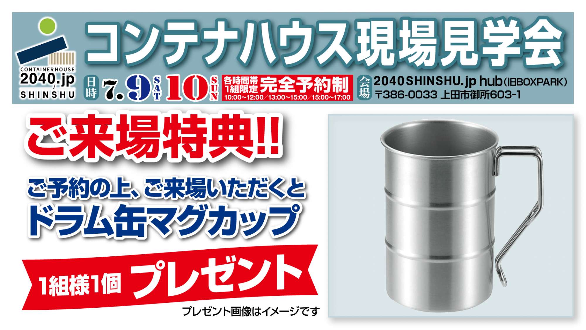 建築用コンテナハウスにご興味のある方、是非この機会にご参加ください。ご参加の皆様にはご来場特典としてドラム缶マグカップ(1組様1個)を贈呈いたします!!