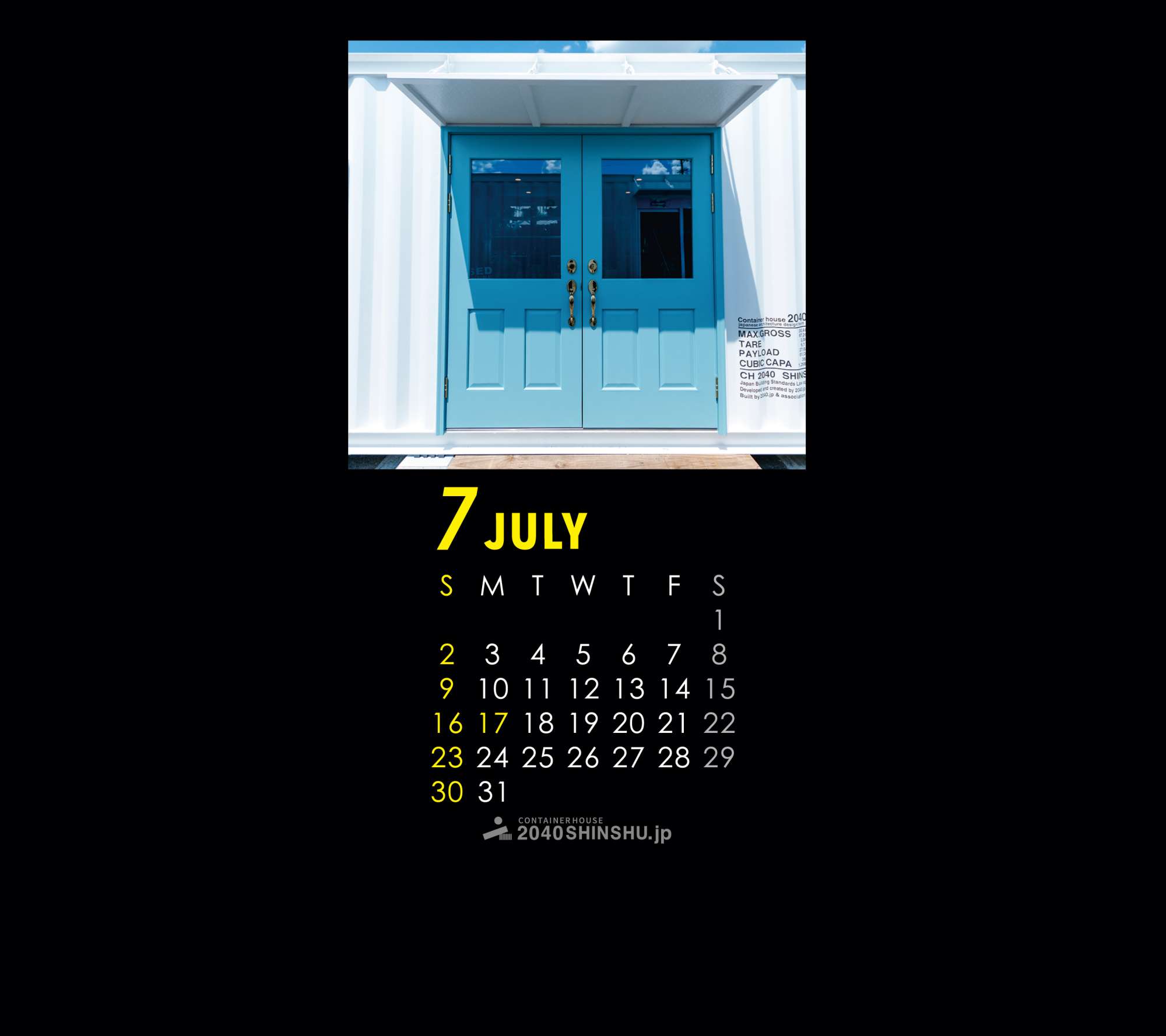 コンテナハウス2040SHINSHU.jp、2023年オリジナルカレンダー壁紙【7月】です!