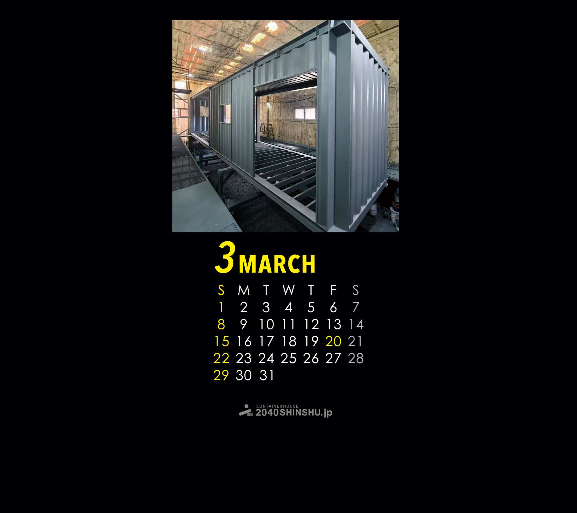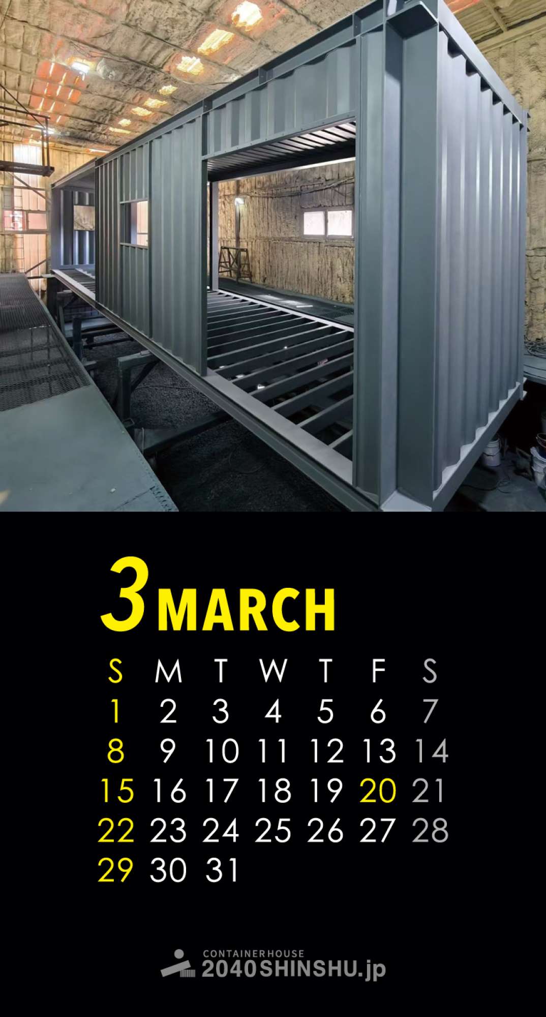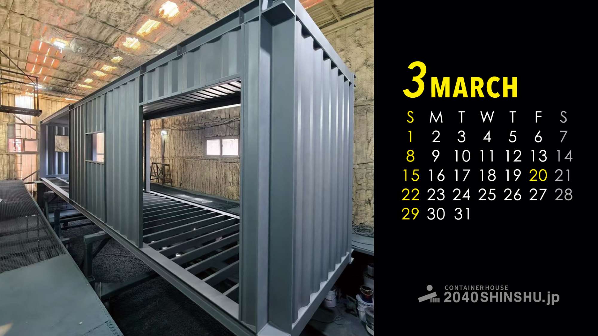 コンテナハウス2040SHINSHU.jp、2026年オリジナルカレンダー壁紙【3月】です!